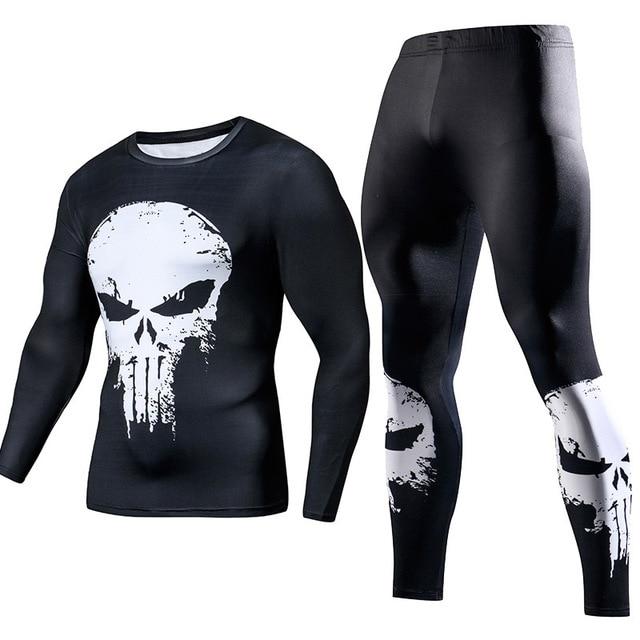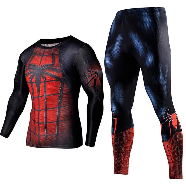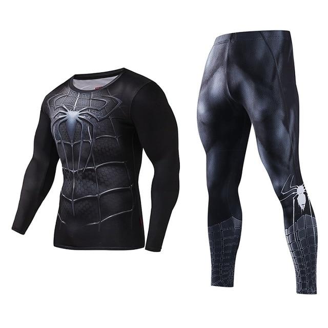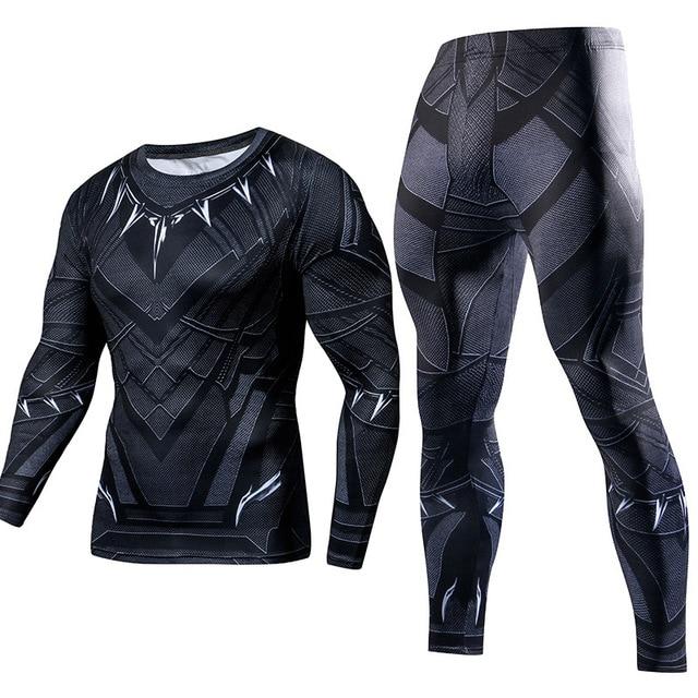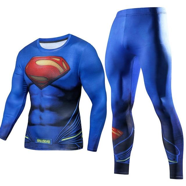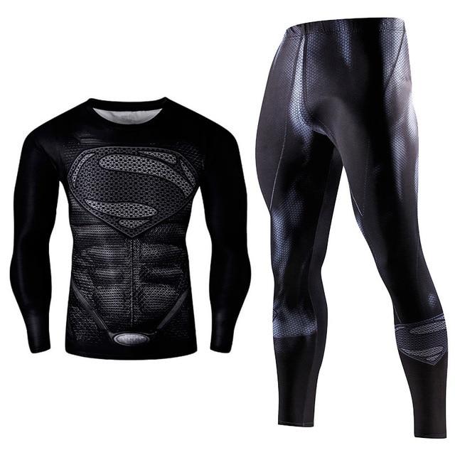 Men's Compression GYM training Clothes Suits workout Superman jogging Sportswear Fitness Dry Fit Tracksuit Tights 2pcs / sets